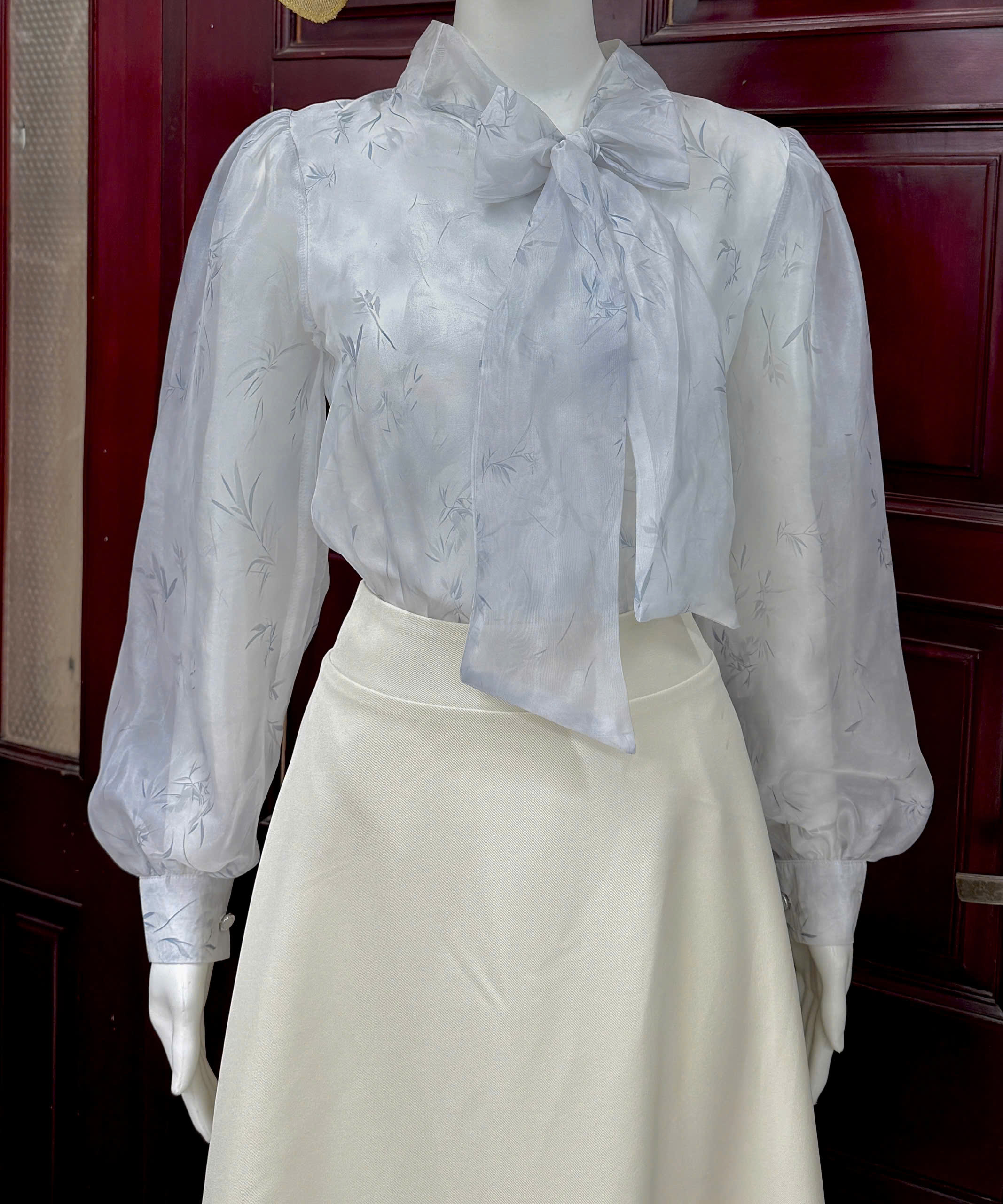 ✧ Thiết kế cổ nơ bản lớn – điểm nhấn dịu dàng, sang trọng