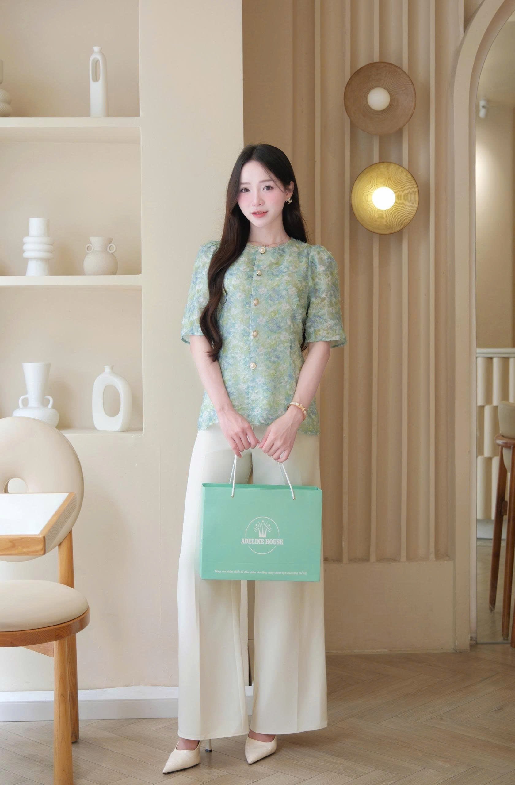 ADELINE HOUSE- SET ÁO HOA XANH + QUẦN SUÔNG THANH LỊCH - TK151.2 + TK189.1
