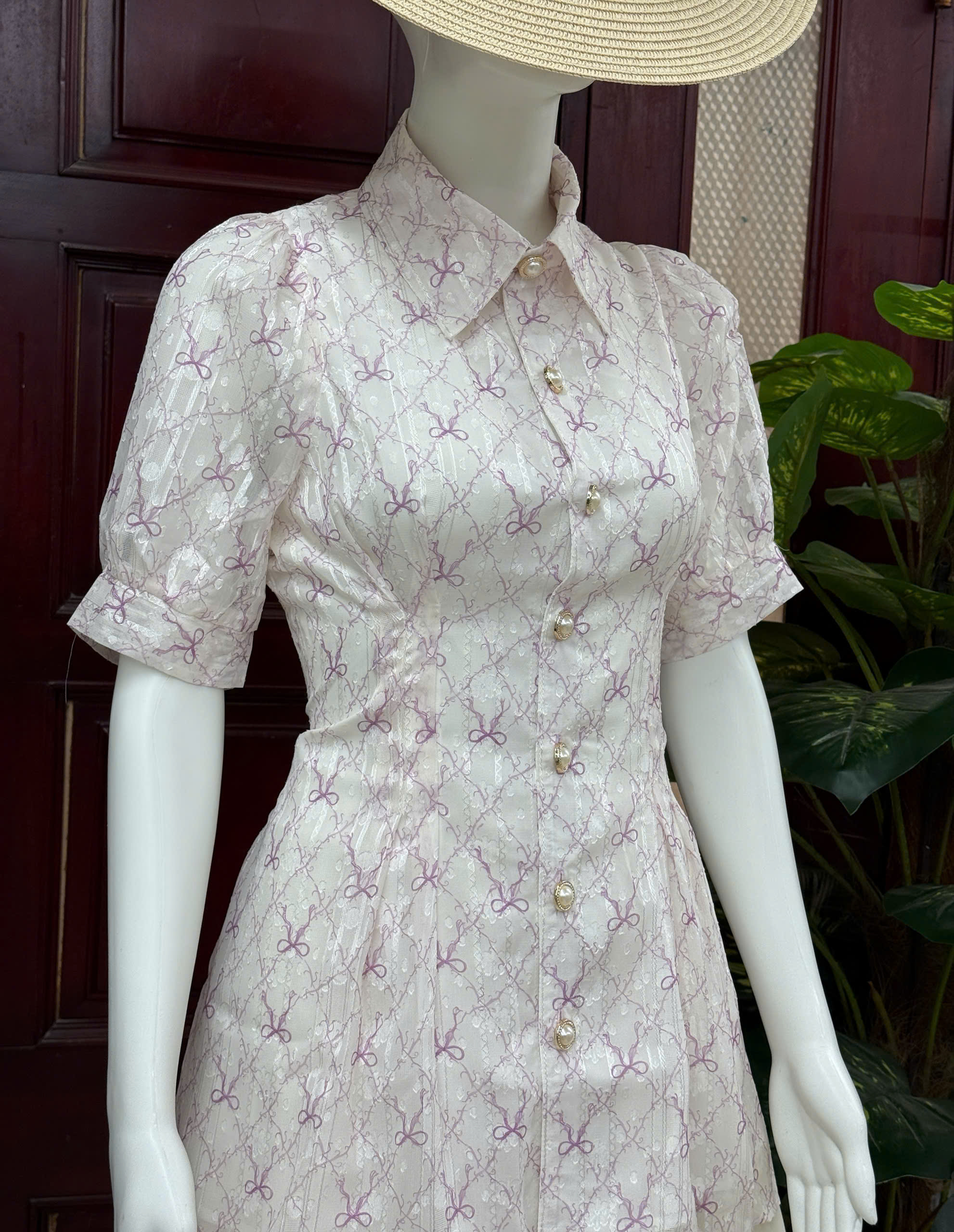 ✨Chất vải họa tiết nơ nhỏ xinh mang lại cảm giác dịu dàng và rất nữ tính