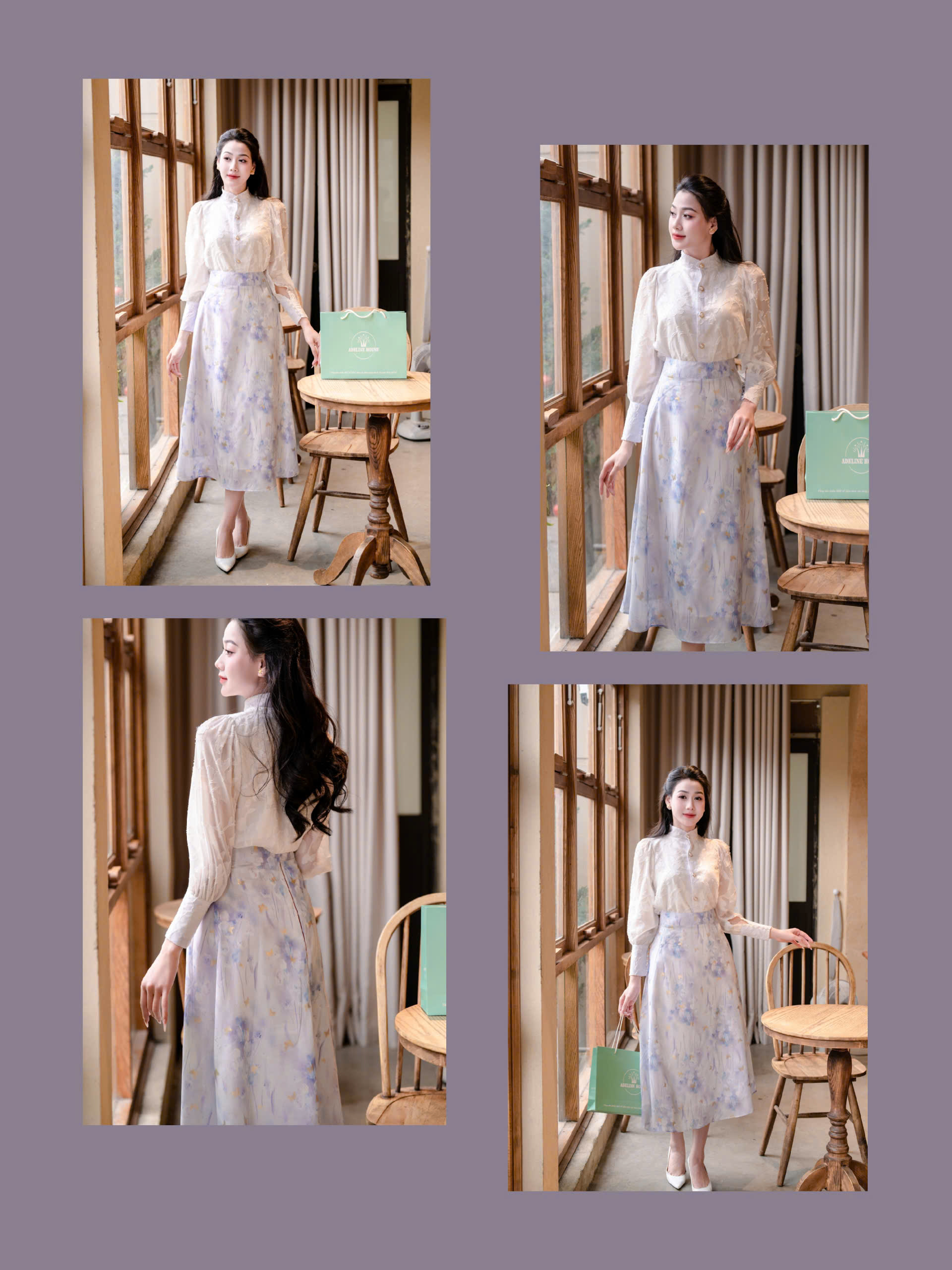 ADELINE HOUSE- SET ÁO SƠ MI TRẮNG + CHÂN VÁY HOA NHẸ NHÀNG- TK162.2 + TK157.4